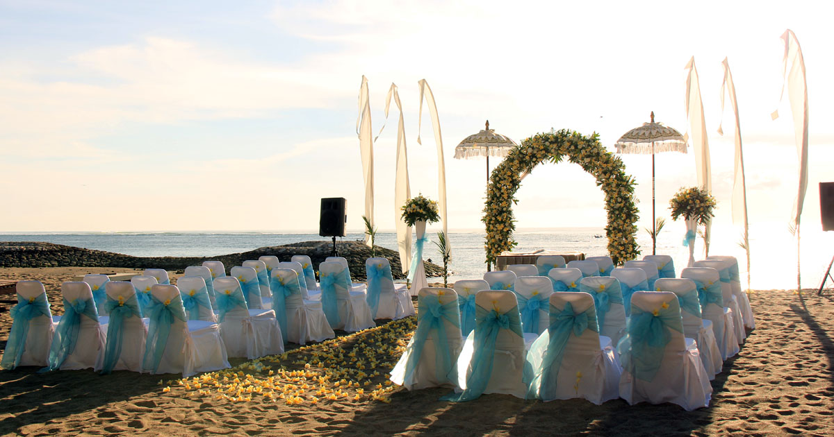 Kuta Beach is quite long coast start from The Patra beach up to Hard Rock hotel area, the beach looks so busy but still left some place which is good for wedding venue. Most of the beach wedding is located in front some resort. From our experience, we recommend some beachfront venue for your wedding: The Patra beach resort, Majoly, Ramada bintang Bali, Dicovery kartika Plaza, and Bali Garden. Northen Kuta beach is too busy for wedding venue.