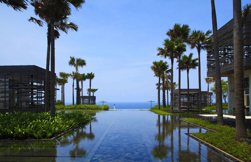 Alila Uluwatu, designed by the renowned architectural firm WOHA, offers an unparalleled luxury wedding experience. This all-pool villa resort, part of the prestigious Alila Signature collection, combines high-end living with innovative design and sustainability. The villas feature a contemporary, Balinese-inspired aesthetic, set amidst the breathtaking cliffs of Uluwatu. Each villa is thoughtfully designed according to environmentally sustainable principles, blending seamlessly into the surrounding natural landscape while highlighting Bali's cultural richness. For couples seeking a unique Bali wedding venue, Alila Uluwatu is the perfect backdrop for a dream wedding, harmonizing luxury with nature.