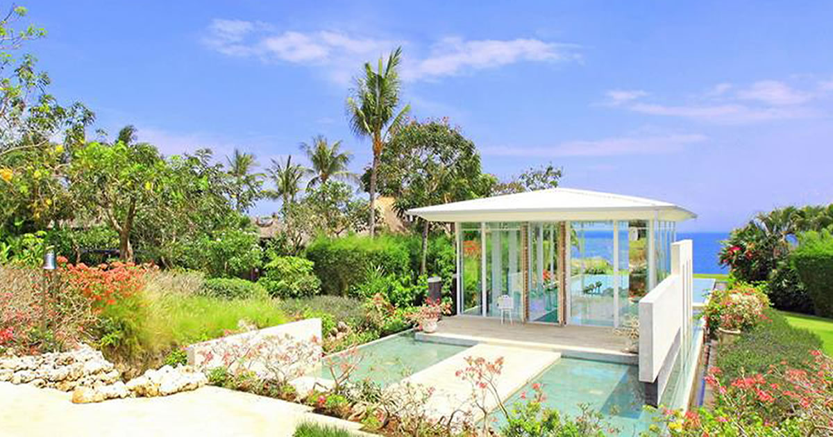Bali Wedding Astina chapel? IT is located within the Ayana resort Jimbaran . The chapel specially designed with glass wall.Perched near the cliff top over looking to Indian ocean . Astina air-conditioned wedding pavilion can accommodate about 80 person for ceremony .The wedding pavillion surrounded by water pond. Beautiful landscape for photo session after wedding ceremony