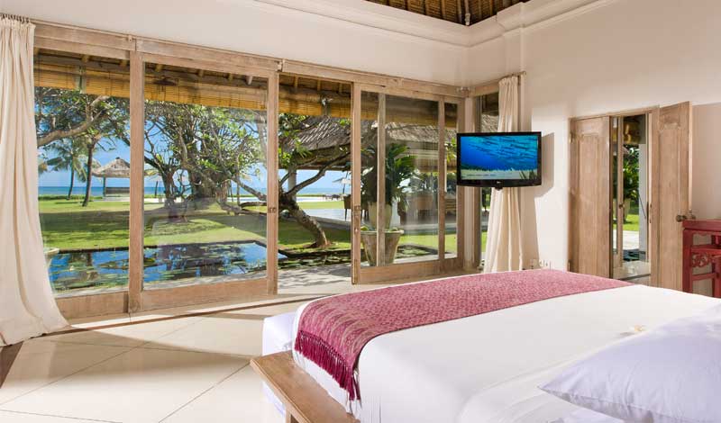 Living areas: Reception hall; large garden living pavilion; air-conditioned TV room; formal dining for 10; informal dining for 10; additional living area in Ocean guest pavilion; garden balé; beachside sundeck. Bedroom: 10 people in 5 ensuite bedrooms with king-size beds (1 converts to twins). Entertainment: Satellite TVs and DVD players in TV room and master bedroom; Bose surround-sound system with remote for living pavilion. Families equipment such as a baby cot;high chair. Sports: swimming pool, and unlimited WiFi and the flawless service of its team of staff.