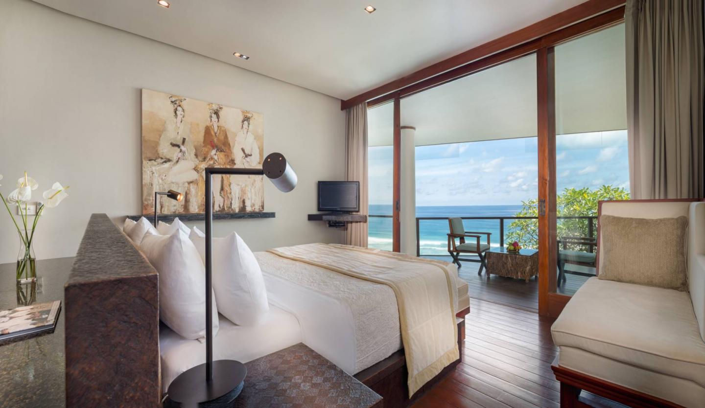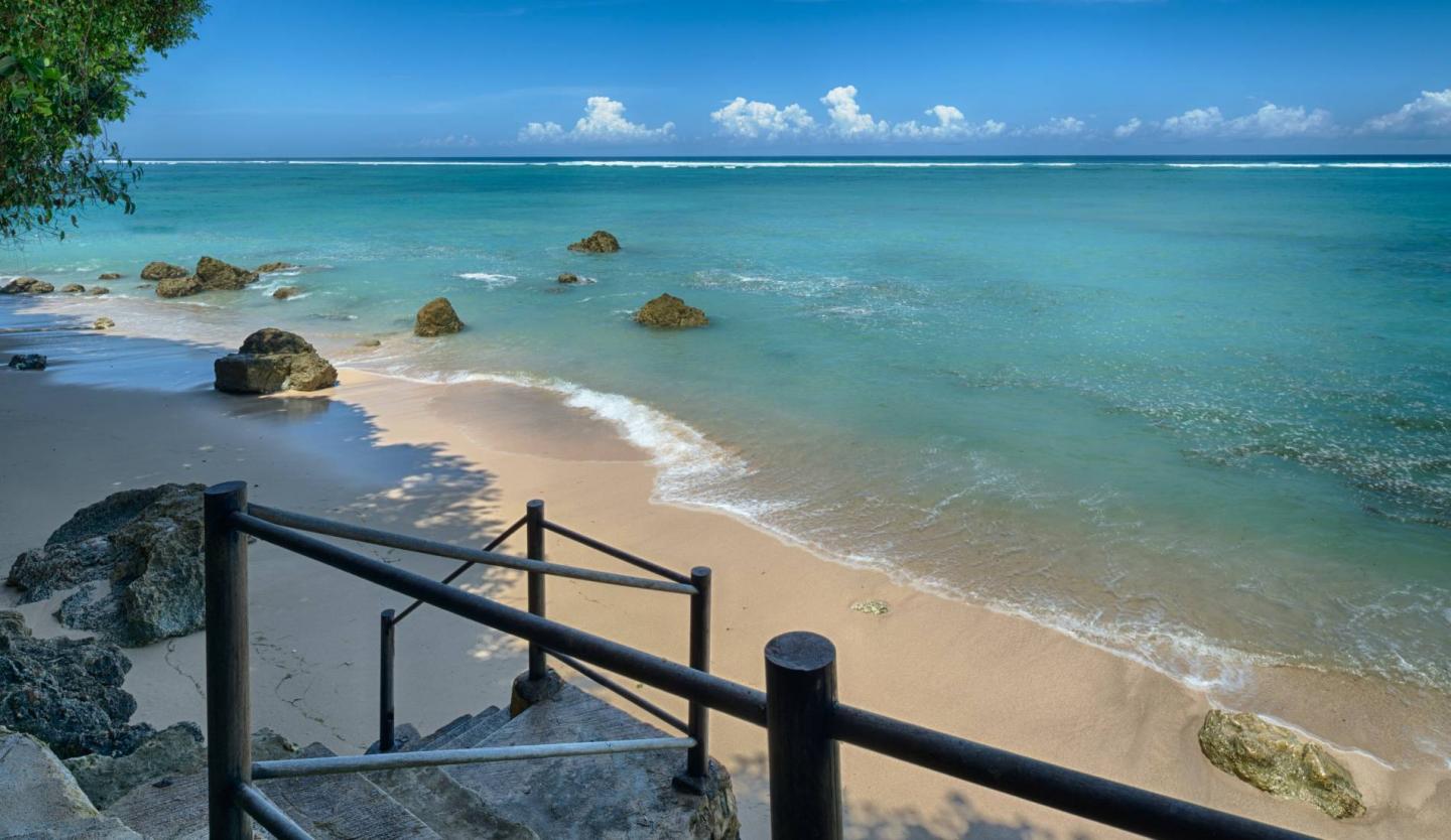 Located on the cliffs edge overlooking the Indian Ocean on the Southern Uluwatu Peninsula or the Bukit, Villa Bidadari Cliffside Estate offers an interesting venue. This villa Bidadari has 3 spectacular ensuite bedrooms in the main residence, and the 4th ensuite bedroom is a seperate Balinese style luxury Cabana that is located on the bottom of the cliff and perched just steps above the white sand beach and crystal blue ocean, accessible by the steps or private inclinator. The Villa's bedrooms offers a stunning views of the Ocean, and beautiful sunset in the evening.