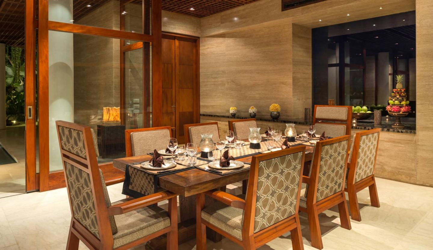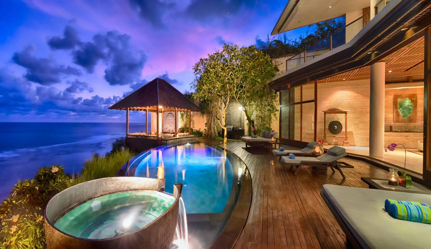 Villa Bidadari Cliffside Estate has a Bale that serves as an outdoor dining and contemplative venue of the Estate. The Bale overhangs the cliff and sits next to the elliptical infinity pool. The view from the ironwood pool deck appears as though at the ocean's edge, making it the perfect venue for intimate and romantic weddings.
