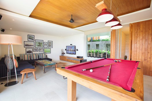 Living areas: Sunken poolside lounge and dining pavilion; guest kitchen; entertainment room; guesthouse with lounge, dining and kitchen area. Bedroom: 10 adults (5 ensuite bedrooms with king-size beds with one that converts to twin beds). A daybed in one of the guesthouse bedrooms can be used by a child below 7 years old. Entertainment: Apple TV; satellite channels; iPod dock; CD/DVD player; Bose speakers. Families equipment such wading pool next to the main pool and children's play area. Sports: swimming pool, games room, play field; and unlimited WiFi and the flawless service of its team of staff.