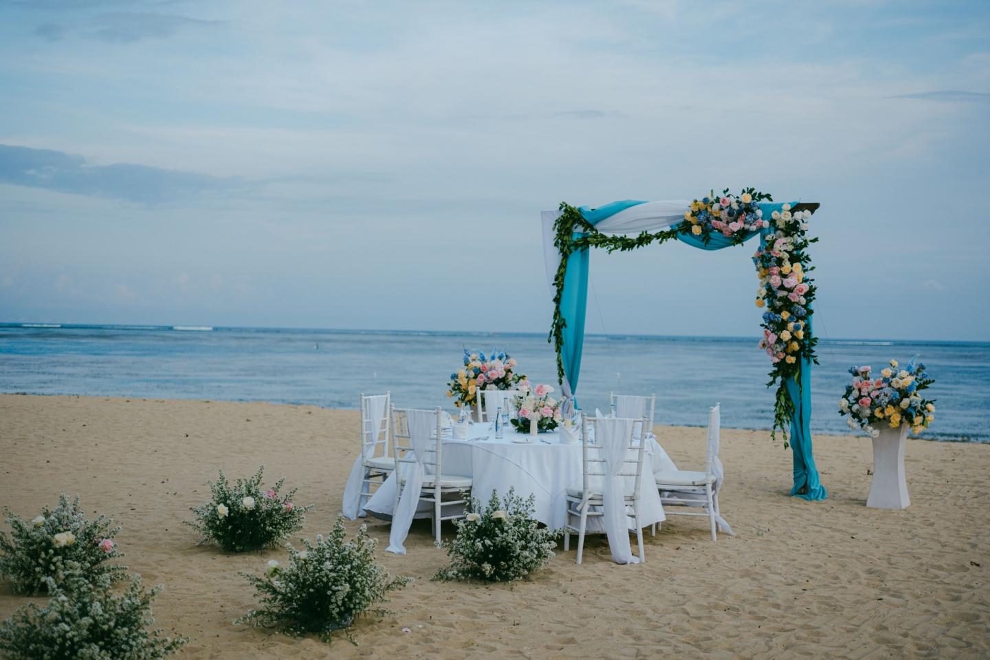 Nestled within 7 hectares of lush tropical gardens, Wedding Garden offers an enchanting setting for destination weddings, surrounded by towering mature trees and coconut palms. The resort combines modern amenities with the charm of traditional Balinese design, making it a perfect choice for a beach wedding. The beachfront venue boasts pristine white sands and crystal-clear waters, while the fragrant flowers and breathtaking views of Sanur Beach create an unforgettable backdrop for your special celebration. It's the ideal location for couples seeking a magical outdoor wedding experience in Bali.