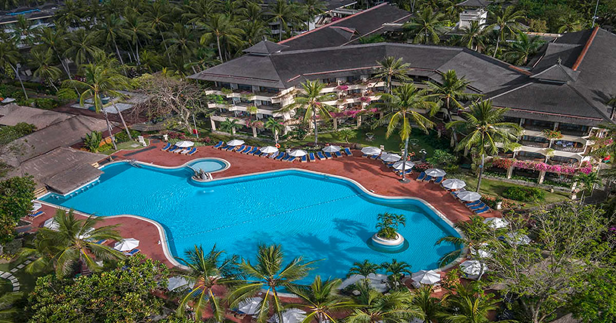 The hotel is also equipped with Sport and fitness center, tennis court and water sport facilities, Aroma spa and Retreat with it is own tranquil beach front and sweeping gardens. Wantilan Ball room offers 678 sqm for meeting space with banquet setting  for group up to 1000 guests in standing reception, there are also  seven additional meeting of varying size can accommodate groups of 12 to 200 persons.
