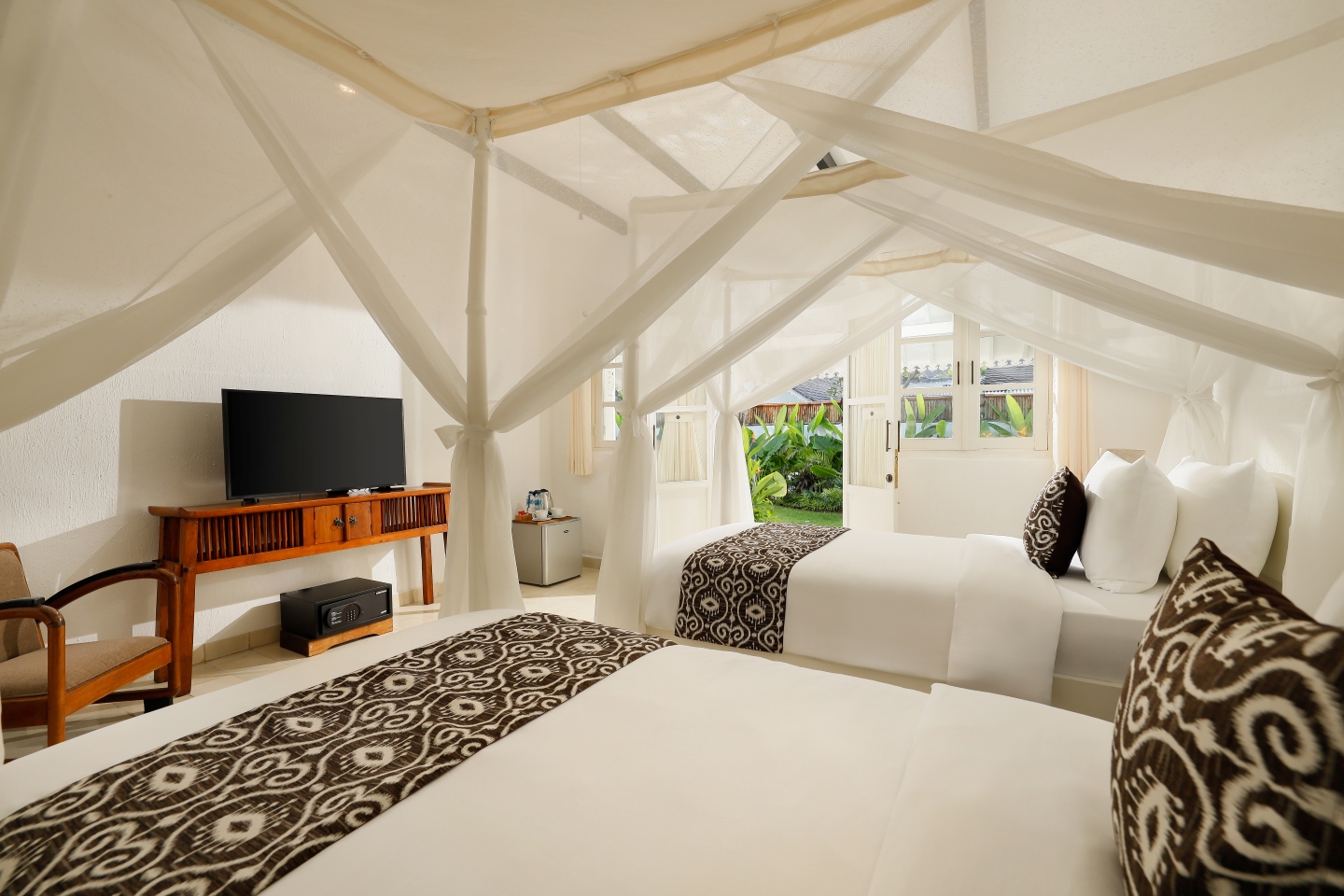 Time-Honoured Architecture: The hotel design blends Balinese elements with tempo doeloe (olden times) style, featuring antique teakwood doors and detailed carvings, providing an authentic vintage wedding feel. - Sailcloth Tents: For larger events, the mandatory use of elegant tents (like the Imperial Canopy or Majestic Marquee) actually enhances the grand and elegant look of the outdoor garden setting. - Accessibility: Strategic location in Sanur, close to Mertasari Beach and the Airport. - New Vision: Following rebranding and under new management, the hotel maintains its classic philosophy while offering modern amenities.
