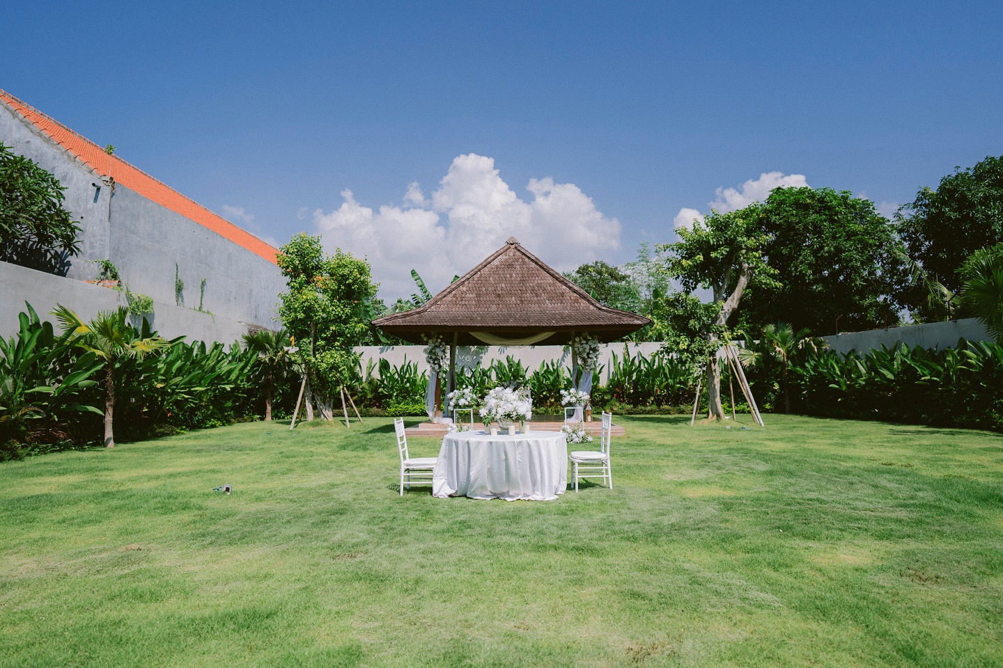 Guest Capacity: Up to 200 guests (for standing events). - Accommodation: Can sleep up to 31 adults in 18 available rooms/villas (mandatory minimum 3-night stay for wedding packages). - Venue Options: Beautiful garden areas, a swimming pool area, and flexible outdoor spaces. - Event Support: Provides catering, decoration, entertainment, and photographer services (via villa management).
