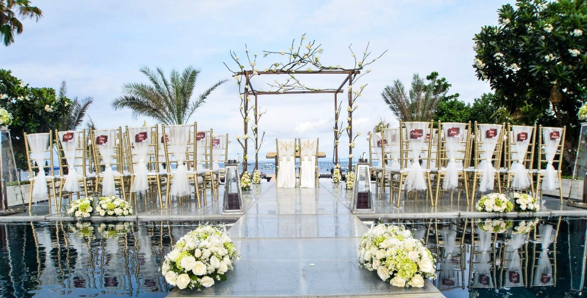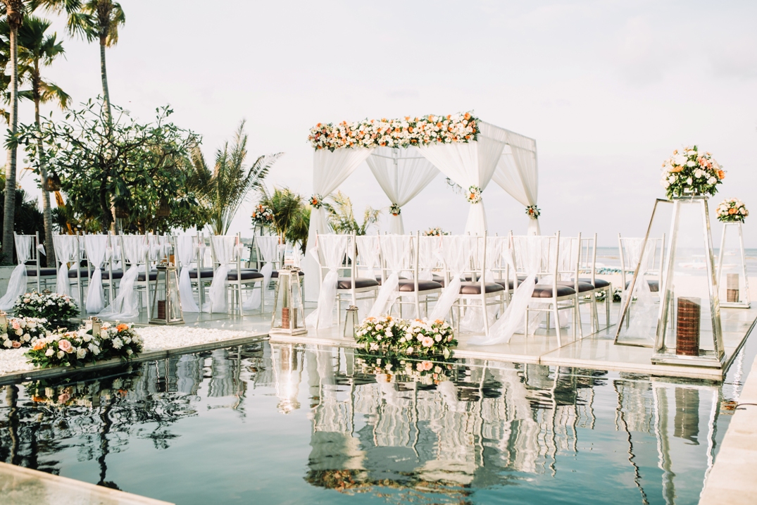 The Sakala Resort Tanjung Benoa offers various choice of wedding venue; water wedding, beach wedding, chapel wedding, sky tower wedding venue, pavillion and also ballroom. The Sakala wedding venue is located accross the road from their accomodation area facing to the east and it is possible also for sunrise wedding