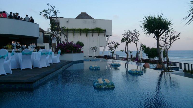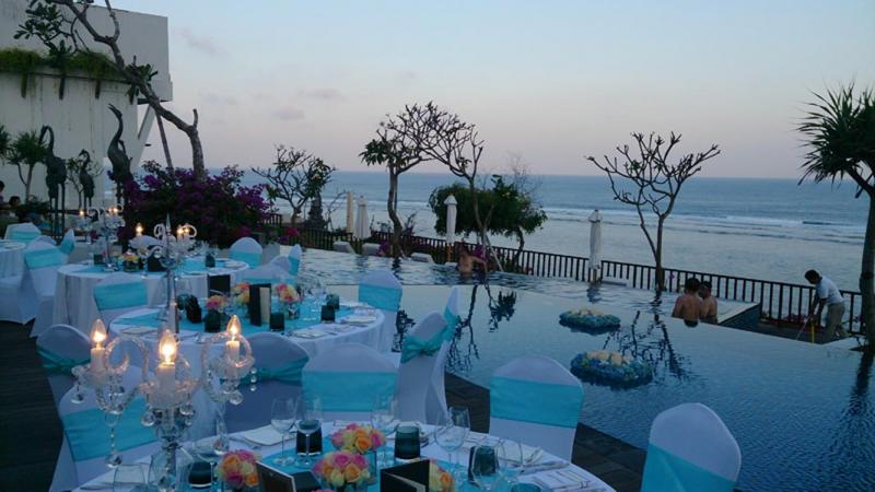 Located in  south part of  Bali,Sawangan beach offers rich of wedding venue option for your  intimate wedding in Bali  .There  an array of hotel can be found in these cliff top with Indian ocean view, one of those are Samabe suite and villas .Samabe Bali can be reached within  30 minutes drive by car from Denpasar Ngurah  Rai Airport .Samabe Bali offers you 81 suites and villas , 2 restaurants and 2 bars.The accommodation categories  devided into : ocean fromt honeymoon,ocean front honeymoon pool suite,Ocean front family suite ,ocean front family pool suite ,ocean front Samabe suite and ocean front Samabe pool suite .Pampering your  holiday and wedding in Samabe with a abundant facilities provided includes:pool, fitnest center, Spa, beach, Lumba lumba  kind clubs, Hospitality lounge, business facilities, boutique and drugstore