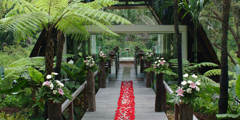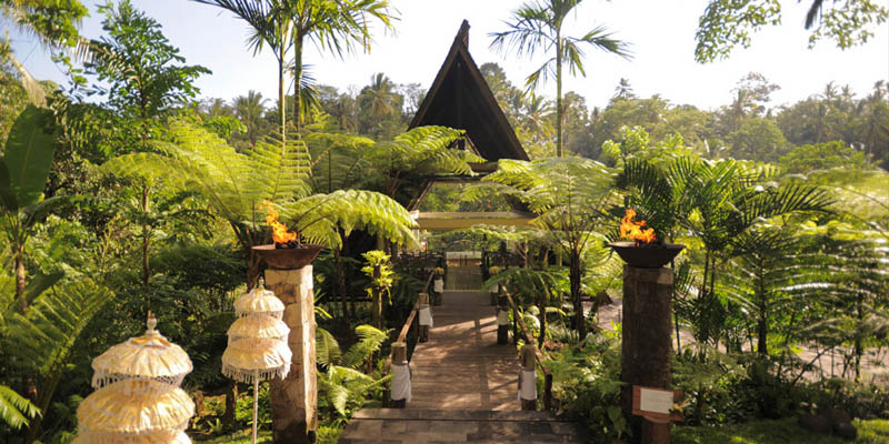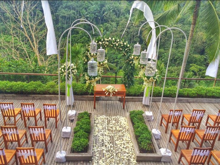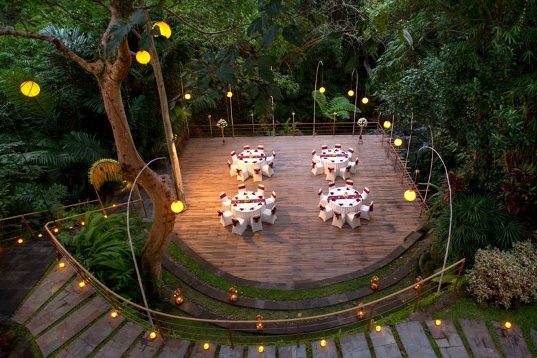 Komaneka at Tanggayuda is a quite resort of almost 2 hectares, situated amidst tropical forest at the edge of a neighboring village. It offers fantastic views of the sacred volcano Mount Batukaru and the Oos River. Your wedding can be held in a wooden deck overlooking a valley of tropical forest.