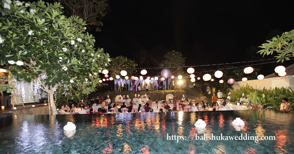Babs and Reshama got married at Villa simona oasis near canggu on 20th Oct 2012 , it is a 4 bed room villa and great villas for intimate wedding for up to maximum of 60 person , one day prior to wedding the sangeet party held at villa phaloma. the phaloma villa also a 4 bed room villas .this villa has a spacious swimming pool and garden space enough for set up dinner and sitting capacity maximum 60 person. Distance from Paloma villa to Simona oasis take about 10 minutes drive . The barath Babs ride a horse with outfit to wedding simona oasis . Congrat to Babs and Reshama.The dinner was caterred by Quintan door catering