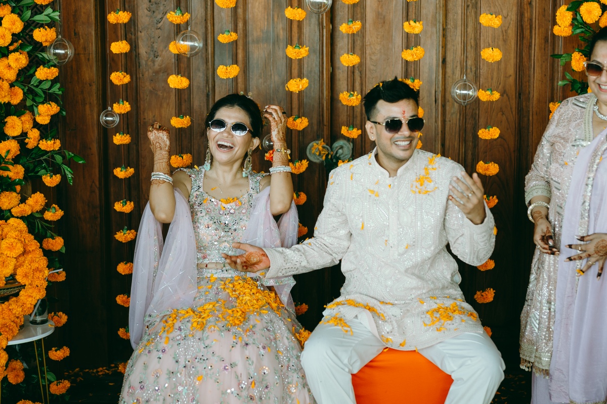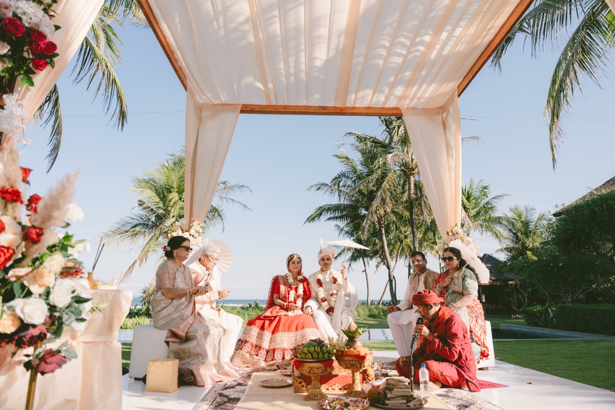 Bali Shuka Wedding proudly presents a magnificent and meaningful Hindu Indian wedding masterpiece, uniting the hearts of Amrisha and Samrat on the exotic shores of Jeeva Saba Bali. Their love story was etched through a series of sacred traditions, blending the richness of Indian culture with the tropical charm of Bali.