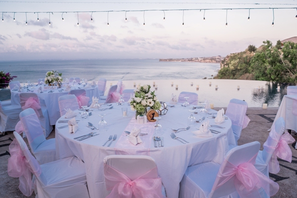 Long journey of love Andreas and Chyntia finally landed in Blue heaven Padang padang , celebrated here with intimate moment witnessed by family and best friend .Blue heaven padang padang can accomodate conveniently up to 100 pax .Nice pool look merges with a beautiful blue ocean .Great wedding pavillion and best cliff top venue at affordable cost for wedding reception . Smart couple and choose this venue.No accomodation available but they stay in a hotel in Pecatu area and Kuta area .