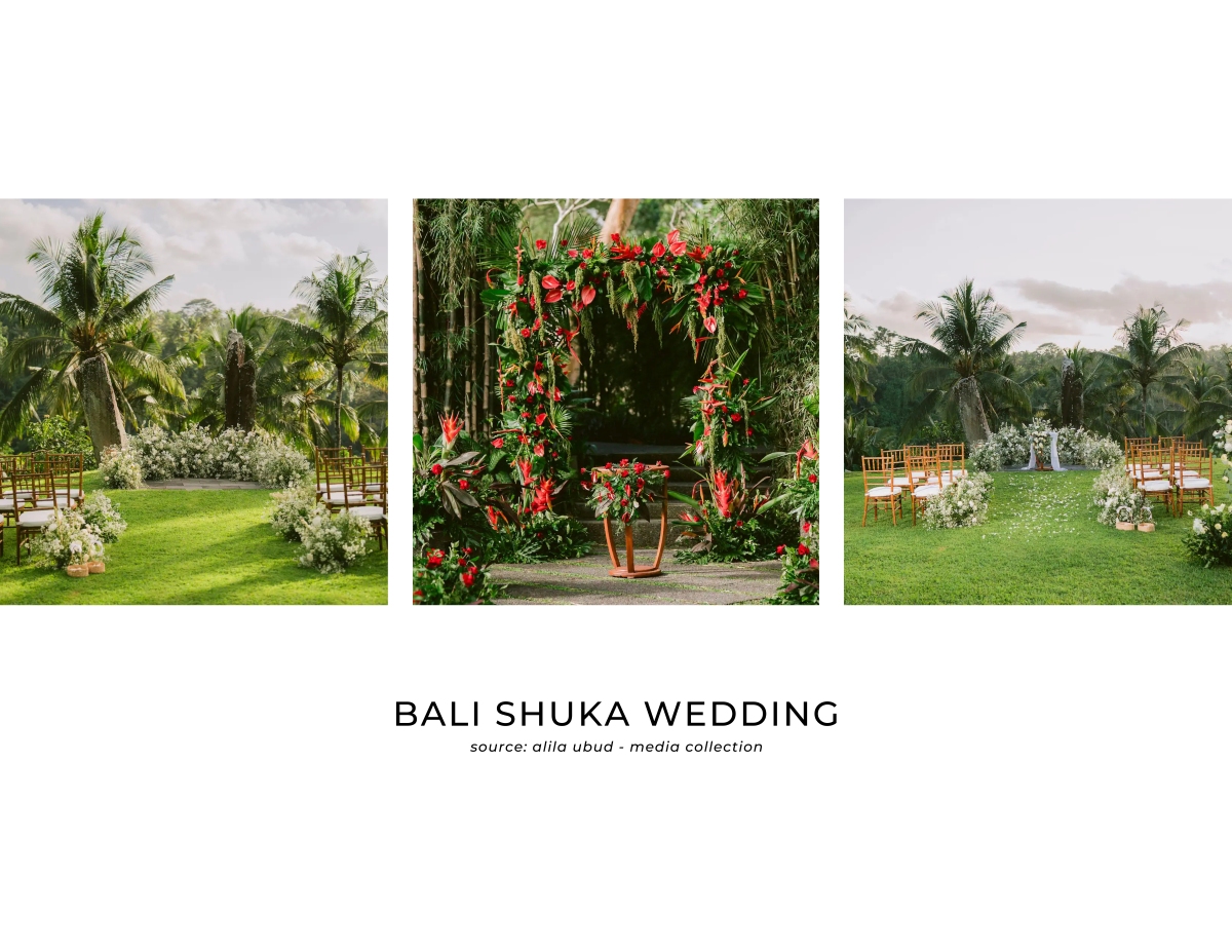 Entrust every detail of your dream to the experts! With Bali Shuka Wedding, an experienced wedding planner intimately familiar with every magical corner of Alila Ubud, your wedding will be flawlessly executed, stylishly presented, and perfect. Don't just dream—let's make your timeless classic story a reality on the enchanting cliff edge of Ubud.