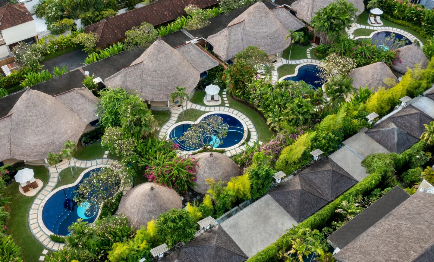 - High Privacy: Every villa features a private pool, kitchenette, and open-air living room.