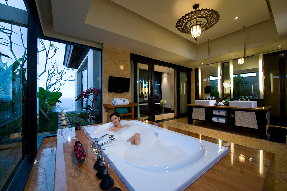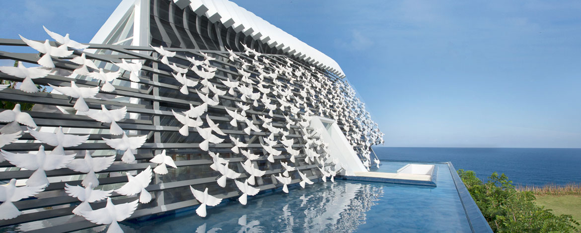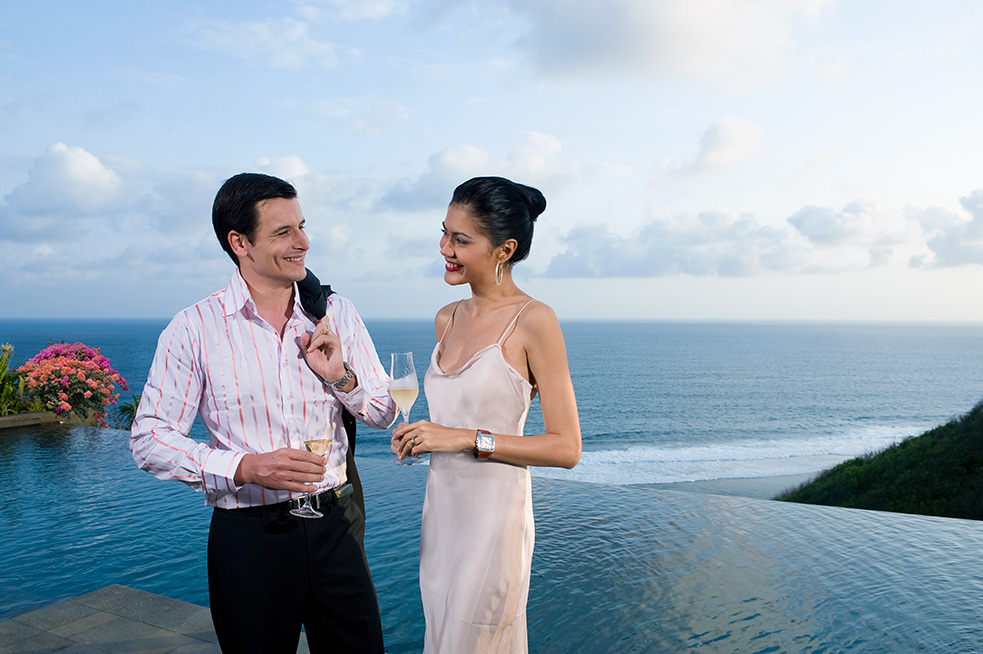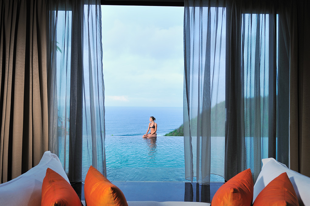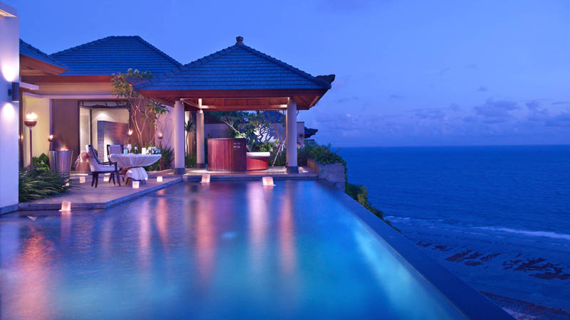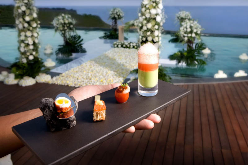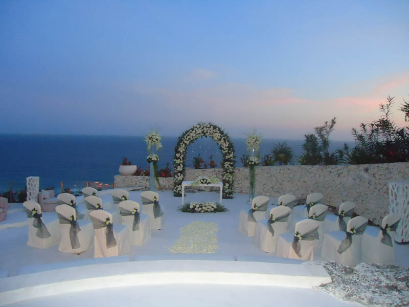 Infinity wedding ceremony at Umana Bali Ungasan Resort. This Infinity water wedding ceremony package already includes ceremony venue usage in the main pool, water stage acrylic set up, three night stays in Pool Villa Ocean View for bridegroom, wedding decoration and sea view backdrop that make your moment unforgetable