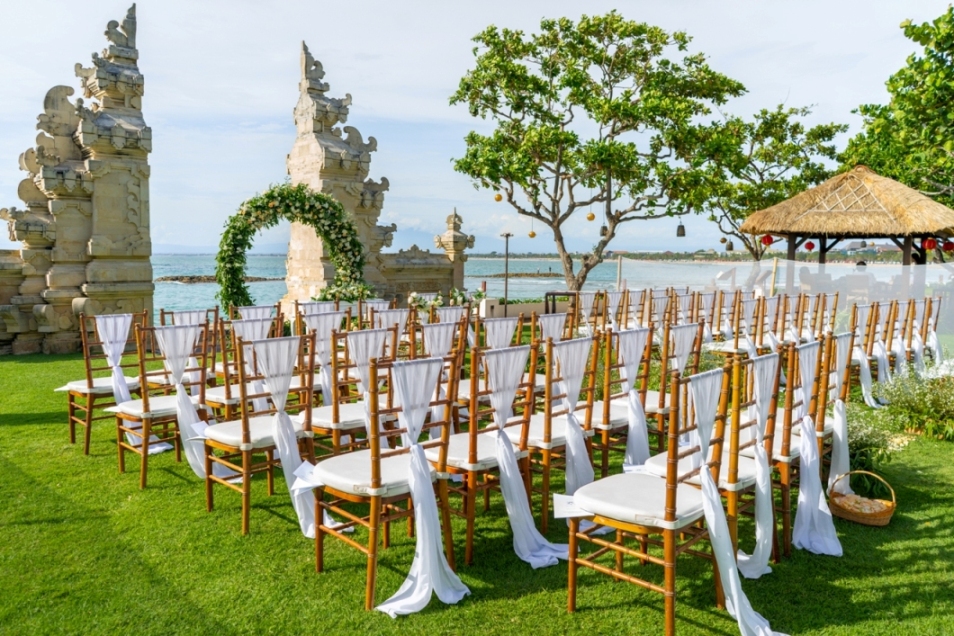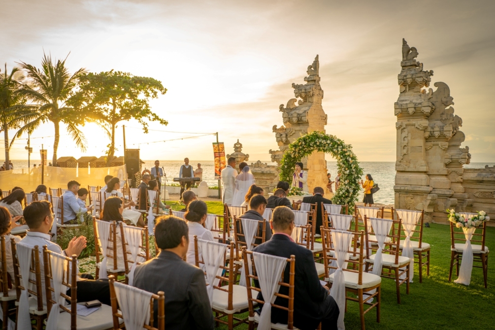 Looking for wedding package in Kuta area?. We offer you Discovery Kartika Sandat wedding package which is designed for big wedding. This wedding package already includes two night stay for bridegroom, usage of wedding venue at the iconic Beach gate Hotel Discovery Kartika Plaze, fresh flower decoration, entertainment, dinner reception, hairdo and makeup, photo & video service and also wedding planner and coordinator services from Bali Shuka.