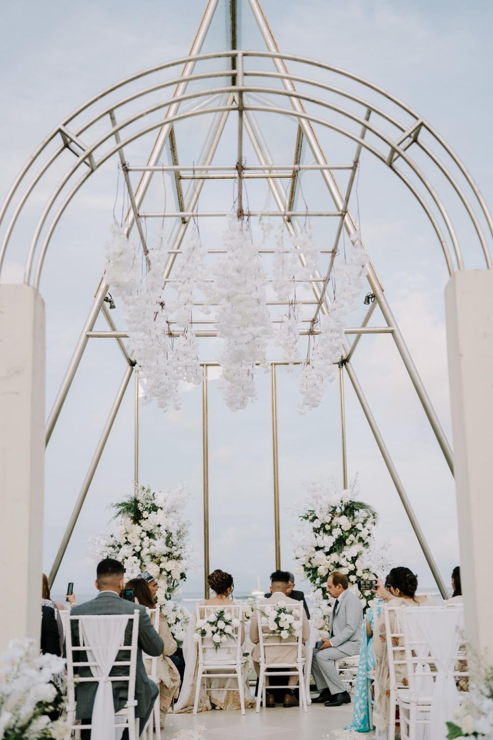 - Ceremony decoration: arch flower, altar table & flower centerpiece, standing flower, flower aisle arrangement, flower confetti, welcome board