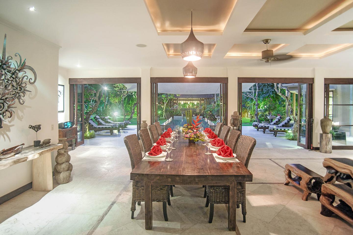 The enchanting garden and the quite near-beachside location makes this Villa Avalon a perfect Bali villa wedding venue for wedding ceremony and reception. The immaculate lawns are best utilized for ceremony and dinner reception. Villa Avalon can accommodate up to 60 sit-down guests and 80 stand-up guests.