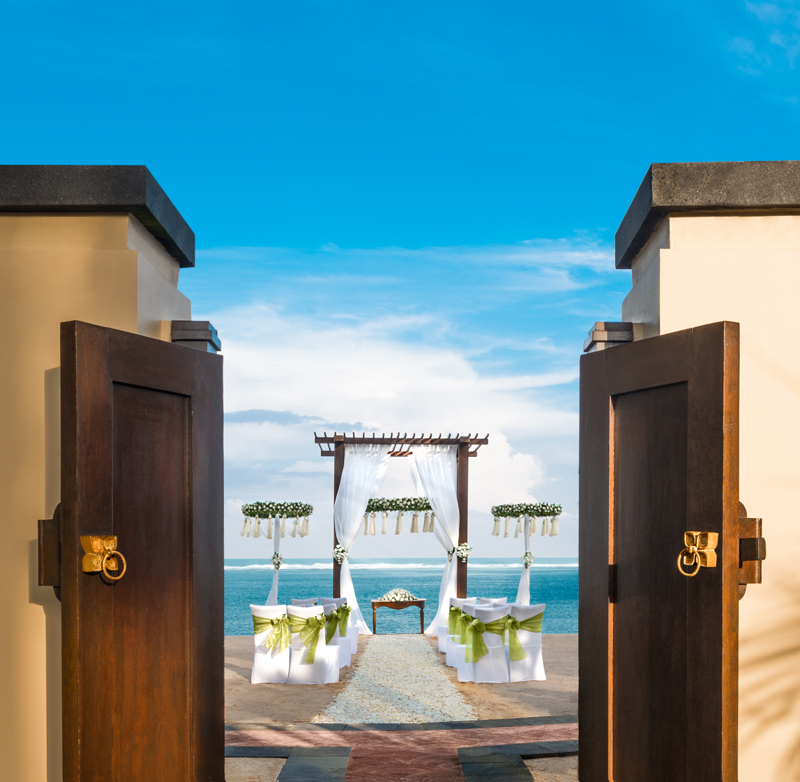 Experience a dazzling splendor wedding on the beach of St. Regis with fragrant of splended frangipani flower decoration accompanied by a calm Traditional bamboo music played at the wedding ceremony on the beach. This ceremony package is designed for 50 persons, already include stay accomodation for bridegroom, bridal hairdo & makeup, photo & video service, wedding decoration and also wedding planner and coordinator services from Bali Shuka.