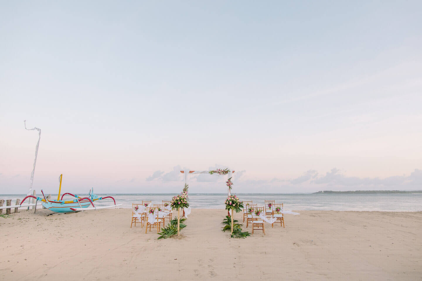 Intimate wedding package at Sudamala Resorts Sanur is created for you, include fresh flower wedding decoration set up, reception dinner for 30 persons, entertainment, wedding cake, celebrant and wedding organizer from Bali Shuka.