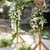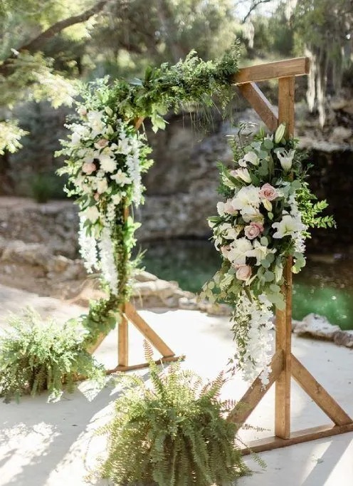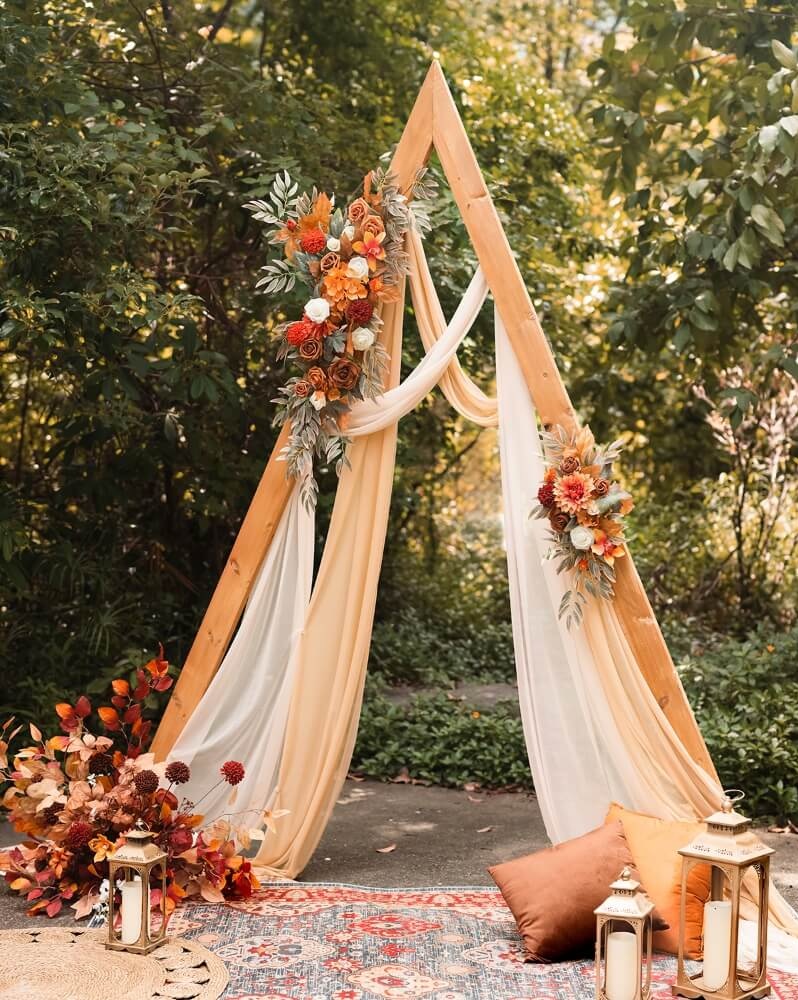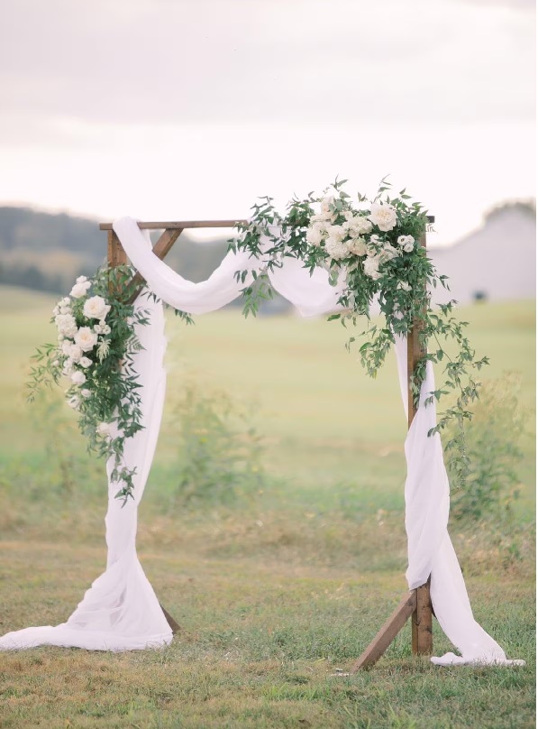 - arch flower decoration , flower petals in basket , flower easel