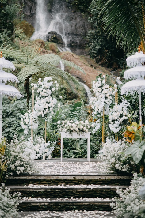 wedding elopement package at waterfall is designed for those wedding couple who wish exchange their vows and experience the beauty of nature sorround them the wedding package includes : venue ,decoration other services