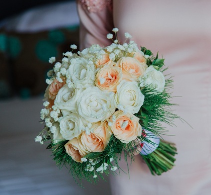 - Bridal Bouquet and groom boutonniere