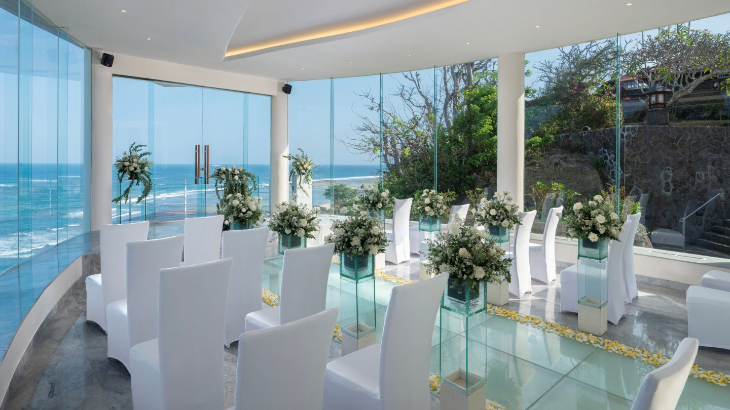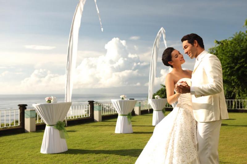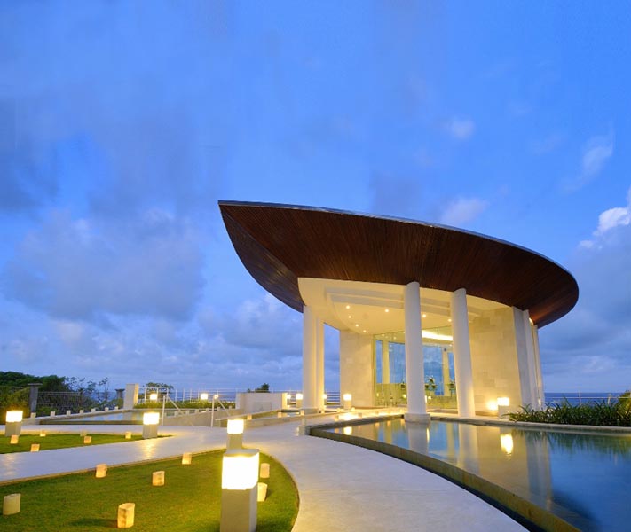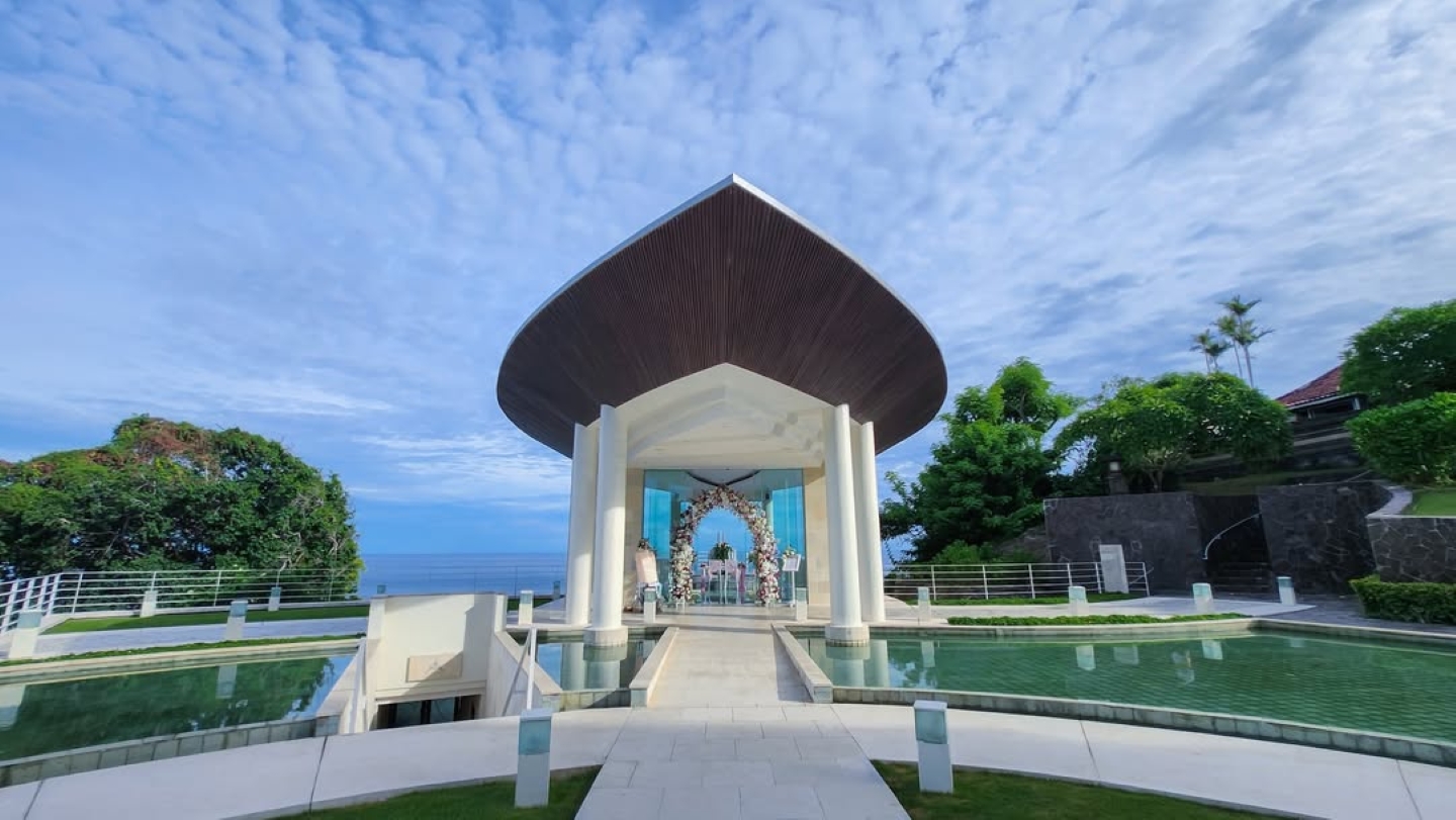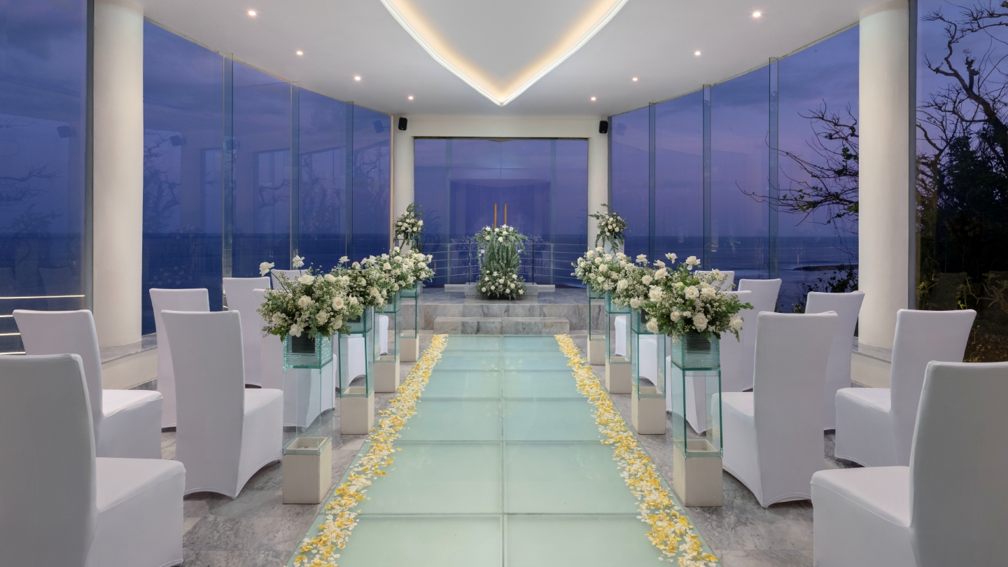 Wedding package intimate at Wiwaha Chapel is design for your Bali romantic wedding in a beautiful sea view chapel perched on the cliff top at Sawangan beach. Wiwaha chapel is located within the Hilton Bali Nusa Dua. The package includes stay accommodation for bride and groom, reception dinner, entertainment and wedding planner services.