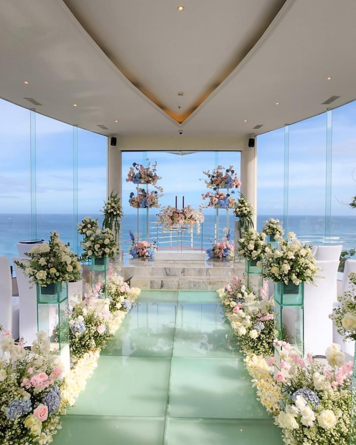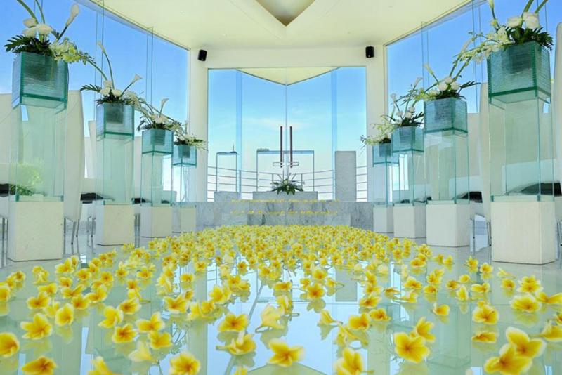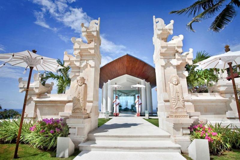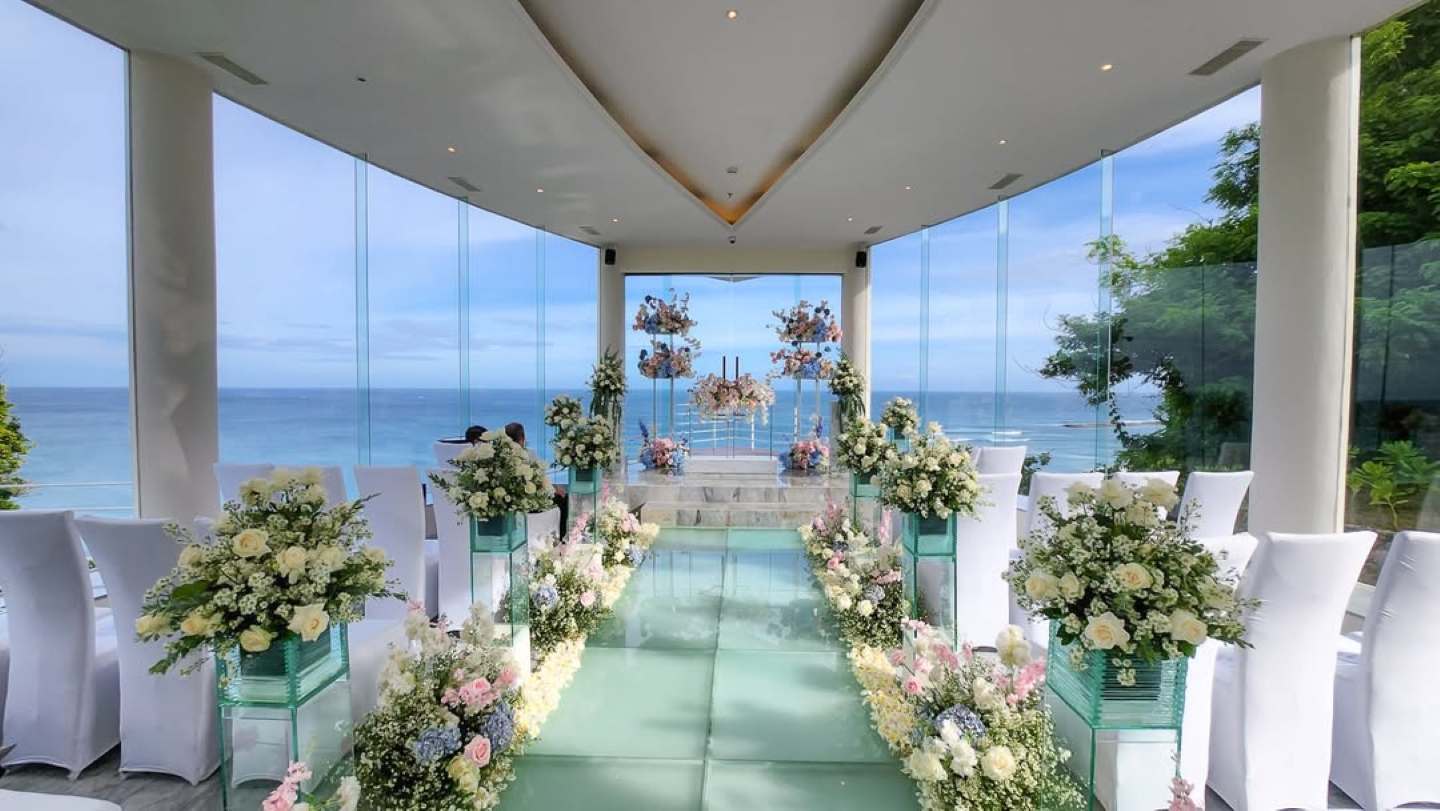 Wedding package intimate at Wiwaha Chapel is design for your Bali romantic wedding in a beautiful sea view chapel perched on the cliff top at Sawangan beach. Wiwaha chapel is located within the Hilton Bali Nusa Dua. The package includes stay accommodation for bride and groom, reception dinner, entertainment and wedding planner services.