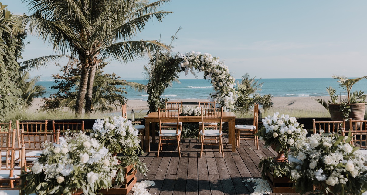 - Menggunakan Venue Sundeck untuk ceremony dan Garden Beach Front Swarga Suite untuk tempat dinner reception.