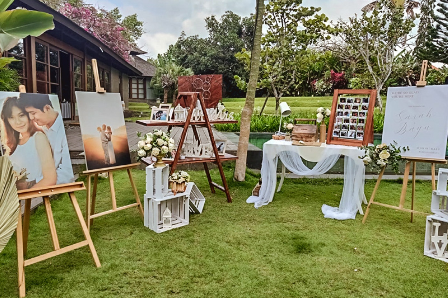 - Photogenic Backdrops: With its expansive garden, art pavilion, and a rooftop terrace offering ocean views (at the Jimbaran/Kutuh location) or lush views (at the Kerobokan/Canggu location), the villa provides an abundance of diverse and stunning spots for both pre-wedding and reception photography.
