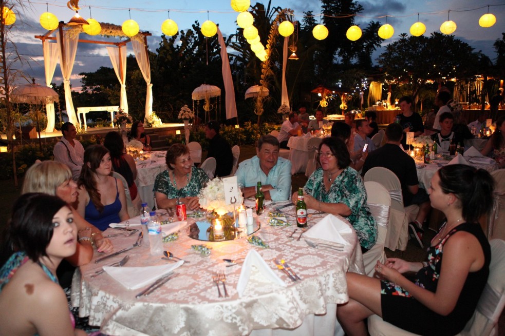 Padma Legian offer some choices of wedding venues, those are Presidential Suite Grass Lawn, pool grass lawn and pool side Presidential suite grass lawn accomodate 100 pax for ceremony, 100 pax for standing cocktail, or 100 pax for sit down dinner with combination of long table and round table set up. Other venue called Pool Grass Lawn can accomodate 70 pax during ceremony and 65 pax for sit down dinner. The pool side venue can not be used for ceremony, it is prefered for cocktail or sit down dinner, the pool side can accomodate for 100 pax sit down dinner.