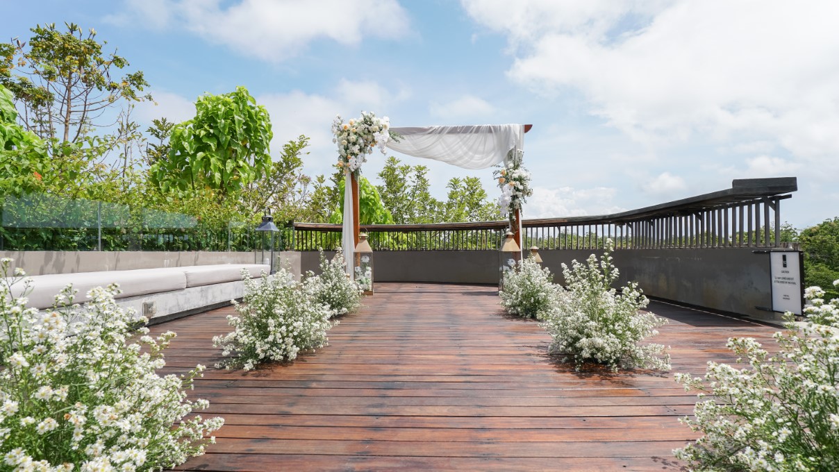 Cross Bali Breakers offers several options of wedding venue: Epic Chapel, Cross Lawn, Infinity Pool, and Hang Loose Roof Top. The Epic Chapel is a glass-framed wedding chapel that provides a picturesque setting for your most special moments. It can accomodate for up to 80 persons (sitting), and 200 persons (standing).affordable wedding packages or "paket  menikah "