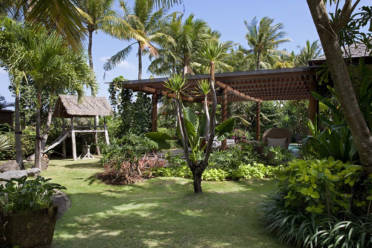 Living areas: All villas have indoor and outdoor sitting areas, dining areas and equipped kitchens or kitchenettes. The larger villas also feature TV rooms fitted with state-of-the-art audi-visual equiment. Bedroom: 24 people (2 x 4-bedroom; 1 x 3-bedroom; 1 x 1-bedroom villas. Entertainment: Satellite-channel TVs, DVD players and iPod docks in all bedrooms. Larger TV screens and pianos available in Villa Dewi Sri and Sarasvati’s TV rooms. Families equipment such children’s playground with swings, slides, sandpit and Wendy house. Sports: swimming pool, air-conditioned gym; and unlimited WiFi and the flawless service of its team of staff.