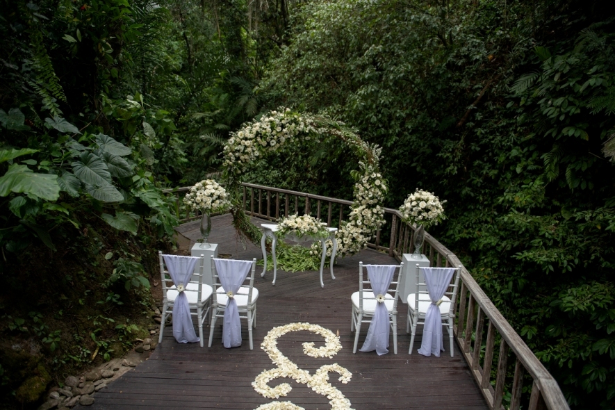 Best wedding venue in Ubud for your intimate wedding or elopement wedding in Bali. The meaning of The Kayon is tree which means the hotel is developed based on natural harmony concept for creating romantic sense. Great five star boutique property in Ubud for intimate wedding, honeymooner, romance, healing and relaxation. Strategic location just about 10 minutes drive away from Ubud Center. The Kayon perched on the Ubud hills side, surrounded by Holy Petanu River, and lush tropical rainforest give a relaxing vibe.