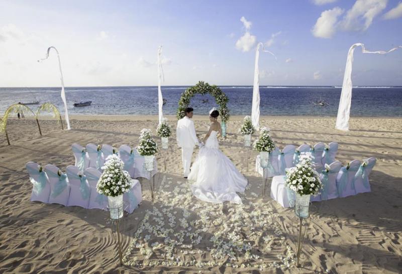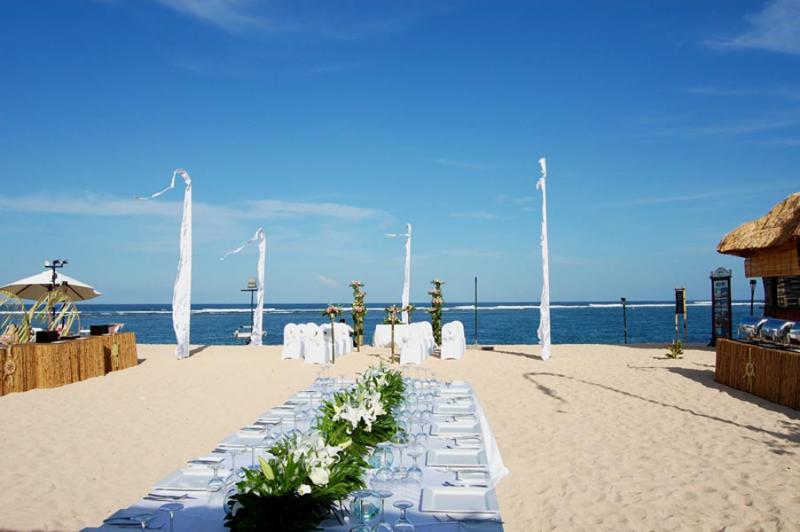 Novotel Nusa Dua offers a versatile Bali wedding venue located within the prestigious, gated Nusa Dua resort area, featuring both a serene beach club and a beautifully landscaped hotel garden overlooking a golf course. Positioned just 30 minutes from Bali’s International Airport and only 5 minutes from the Bali International Convention Center, Novotel Nusa Dua provides an ideal wedding venue all-inclusive for a luxurious yet accessible destination wedding. The resort boasts 188 elegantly designed rooms and apartments, many offering stunning golf course views, along with exceptional amenities, including a lagoon pool, exclusive beach club, Kids Club, spa, and dining options, making it a favorite choice for couples.
