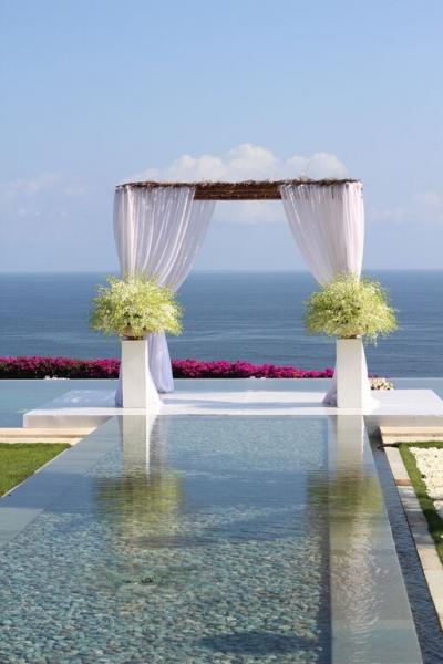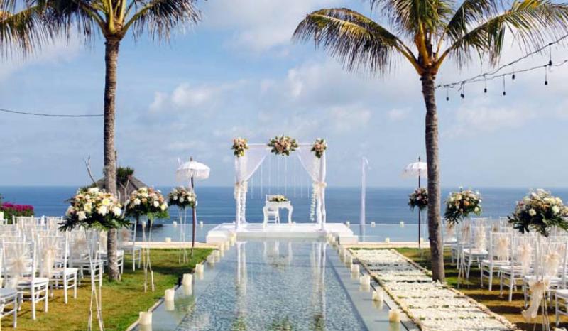 The Surga Villa Estate has beach access down cliff side stairs, an ocean view observation deck and also an infinity pool. The villa offers stunning 360-degree sunset views from the edge of their limestone clifftop gardens. These facts make Villa Surga one of the best Bali villas wedding, a perfect venue to holds weddings. There are some differents event layout options depending on the event size, and no matter which layout you choose, the wedding will take place as the sun sets behind you over the magnificent Indian Ocean.