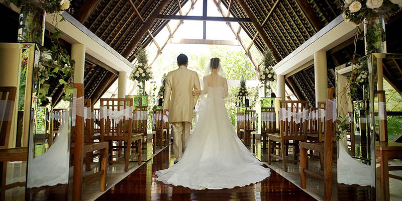 Located in Bisma, Komaneka at Bisma is nestled in Campuhan River valley with amazing views, sloping rice fields, and coconut groves nearby. Your wedding can be held in Wanasmara Chapel. Wanasmara Chapel Ubud is built a place to solemnize love. The name "Wanasmara" means "Forest of Love" in Sanskrit, a name perfectly suitable as it is located amongst tropical treetops and dance foliage along the Campuhan River. The pavilion was almost entirely made of wood and glass, with touch reminiscent of the entirely unique Toraja traditional house architecture at 72 sqm. This pavilion accommodate up to 48 people comfortably, it is an ideal setting for a private and romantic Bali wedding attended by family and close friends.