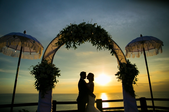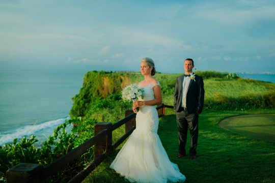 On 21 April 2018, Benjamin and Hayley exchanged their vows at New Kuta Golf. This place is perched above a limestone cliff and offers a breathtaking views of Indian Ocean. Their wedding ceremony and wedding reception was held on the perfectly manicured green lawn at New Kuta Golf. In the evening, they took photo with a stunning sunset as a background.
