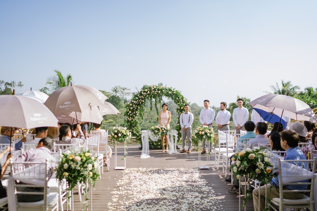 Ubud provides perfect venues for jungle wedding setting. Our sweet couple, Brian & Sarah held their commitment wedding at Bamboo Nest, Padma Ubud. From atop the Bamboo Nest, you can see many lush green trees and the seemingly never-ending river valley. The wedding reception can be held in the Bamboo Nest or the Pool Lawn. For their reception, Brian & Sarah chose to hold theirs at the Pool Lawn.