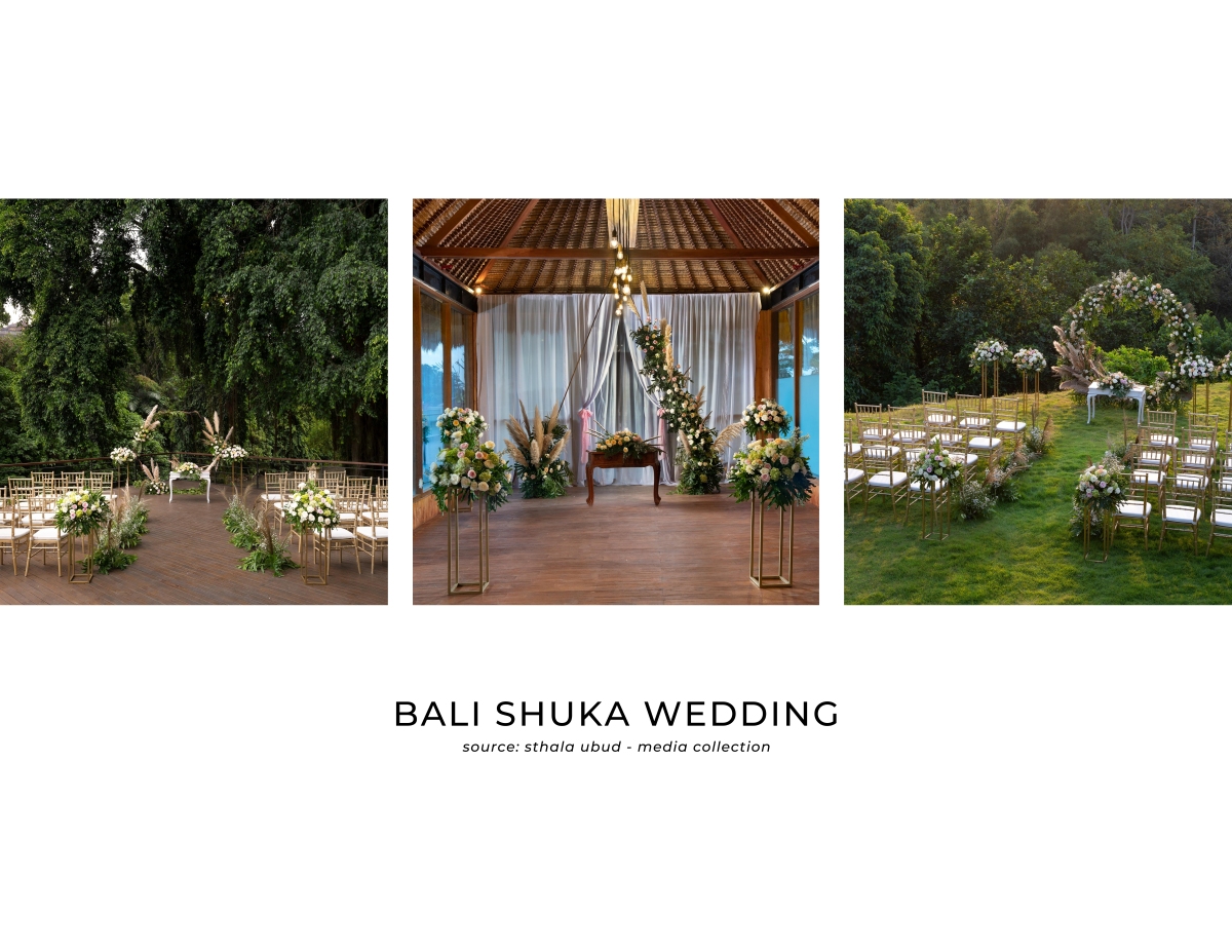 - Simply Sthala Ubud Weddings – For 2 people, including basic décor, bouquet, celebrant, music, and wedding coordination.