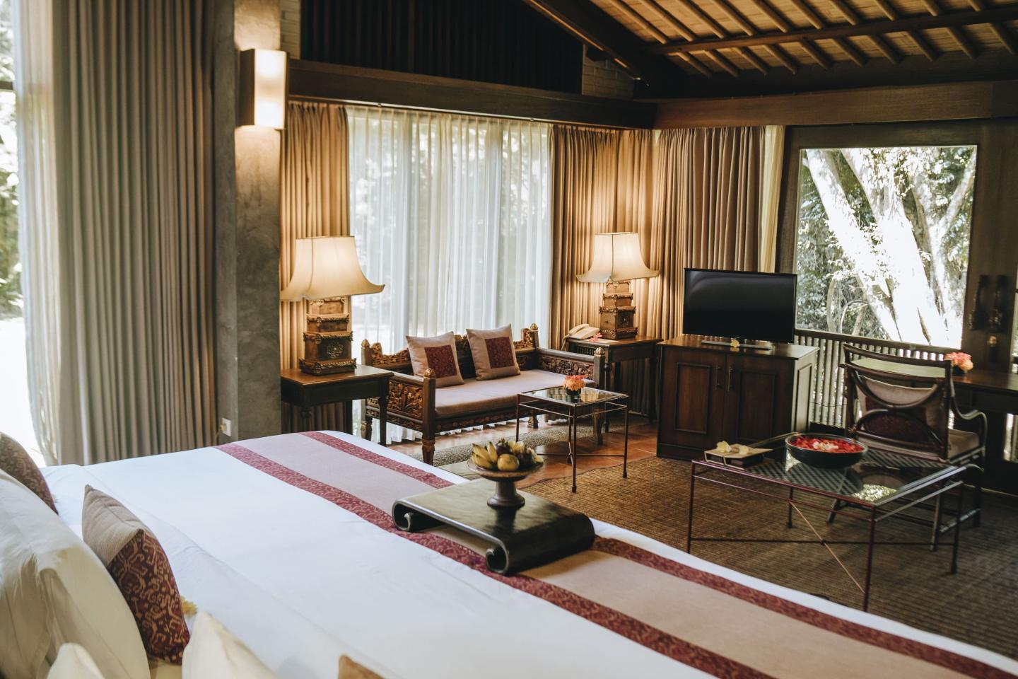 The Hadiprana family originally conceived Dua Dari as a capacious vacation abode. It stands as a secluded haven nestled within a sprawling two-hectare expanse. The location is in a densely wooded locale adjacent to the Petanu River just outside Ubud. This residence is perfect for you who want a garden or forest wedding venue in Bali. The serene enclave comprises two separate residential compounds, each boasting distinct characteristics and also attributes. Mr. Hendra Hadiprana adorned each compound with two units of one-bedroom residences, showcasing his esteemed private art collection featuring works by renowned Balinese artists. Guests can reserve accommodations at Dua Dari individually for a tranquil escape in Ubud or book them in pairs for an unparalleled family gathering experience.