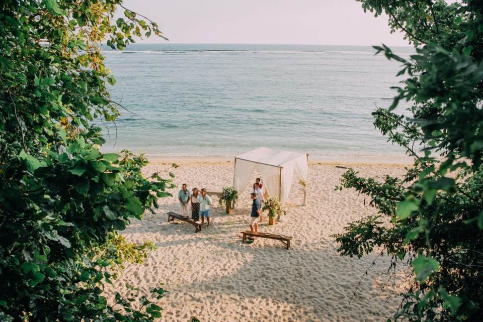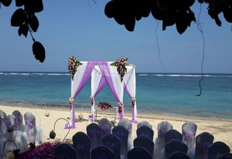 Romantic wedding package at Samabe beach is designed for 10 persons. This wedding package is perfect for intimate wedding or renewal vows. Strengthen your relationship by saying again your promise to each other, witnessed by your son, daughter and your beloved family at Samabe Beach, a romantic hidden place that can be reached through an elavator connected from the Samabe resort to the beach.