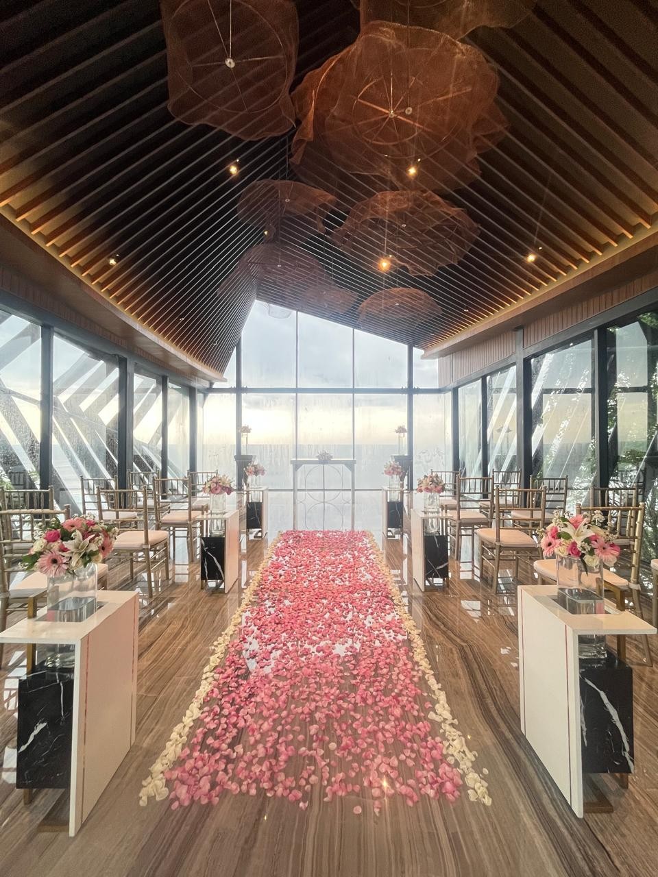 - Ceremony decoration include : arch flower/backdrop flower, altar table and flower centerpiece, flower aisle arrangement, flower shower, standing flowers, and welcome board.