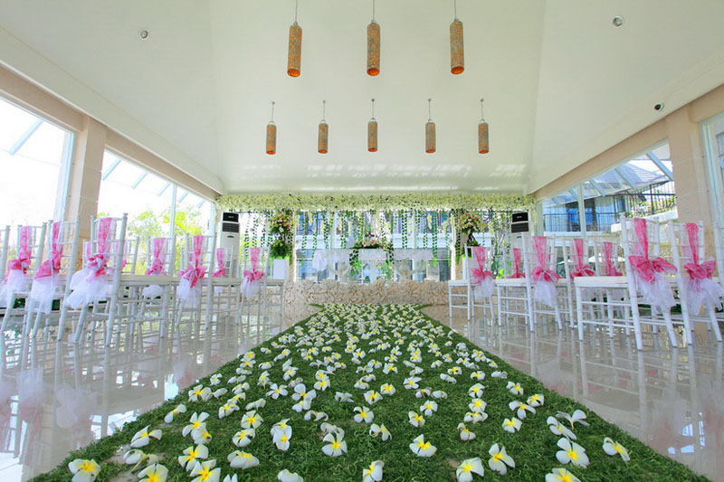 Intimate wedding package Flamingo offers you an amazing affordable package include stay in one time usage venue of the Chapel or the Aquila (open air rooftop chapel), one bedroom deluxe with private pool for bridegroom, standard flower decoration, and also wedding planner and coordinator services from Bali Shuka. Hurry up book your Bali Wedding at Flamingo.