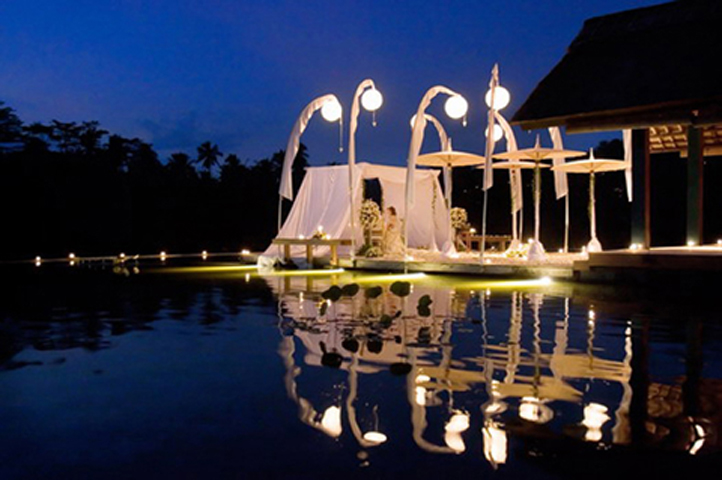 Exchange your vows in tropical resort in Four Seasons at Sayan Ubud. This intimate wedding package is created for 20 persons. The package includes two night stay for bridegroom, wedding decoration, dinner reception, and entertainment.