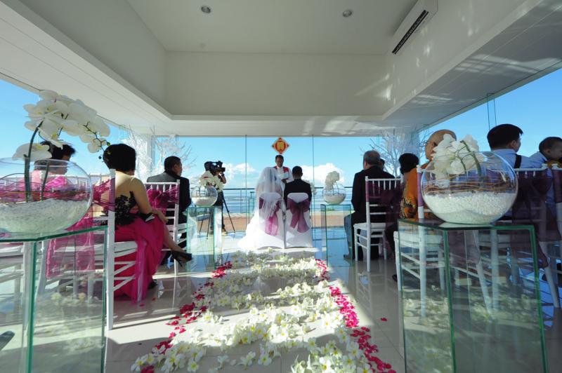 Looking for a chapel wedding venue and wedding package in Nusa Dua area?. We offer you Sandat Wedding Package at Mahogany Hotel with wedding venue at Oracle Chapel for ceremony and at Nibiru Rooftop for dinner reception. This package includes stay accomodation for bridegroom, parents, and guests, wedding decoration, buffet dinner, entertainment, bridal makeup & hairdo, photo & video service and also wedding planner and coordinator services from Bali Shuka.