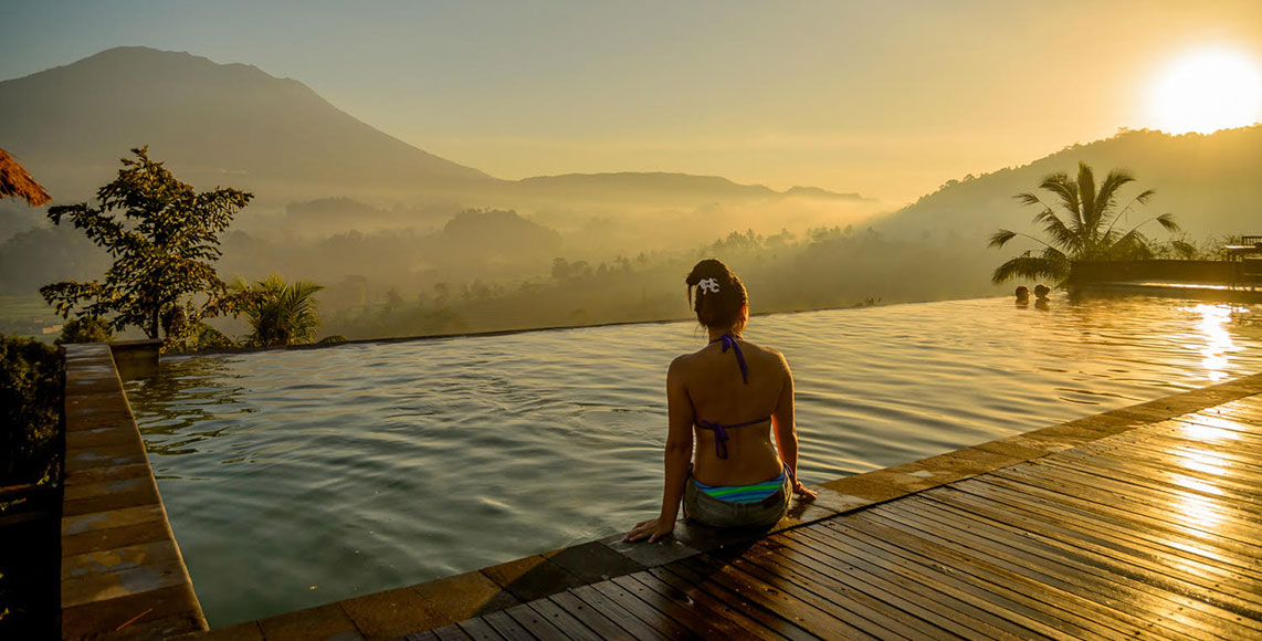 Escape from hustle bustle of the city to east Bali and say I do at Patal Kikian in a high hill of Sidement with stunning rice field panorama and Mount Agung. This intimate wedding package is designed for 12 persons include stay accommodation at six bedroom villa, MUA for bride, wedding decoration, dinner reception.