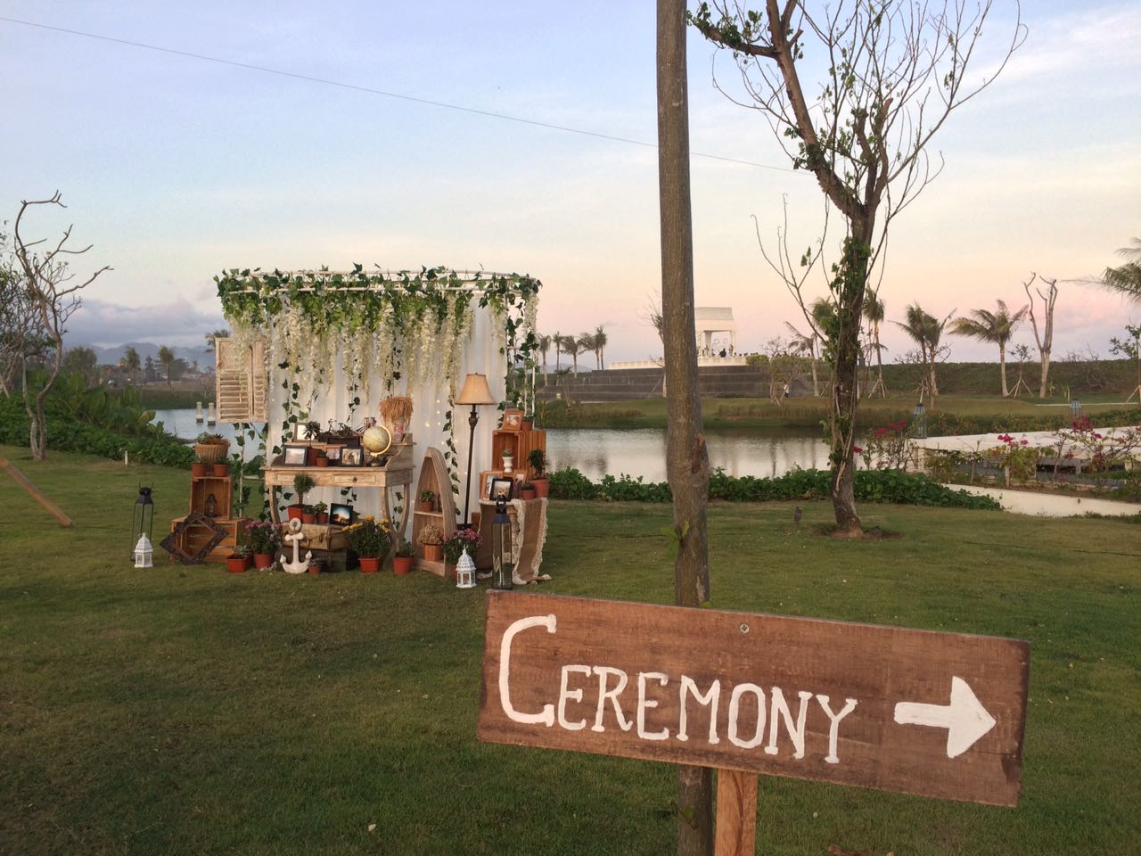 • Fresh flowers ceremony decoration include : flower arch, signing table and flower centerpiece, flower aisle, flower shower, standing flowers and wedding board